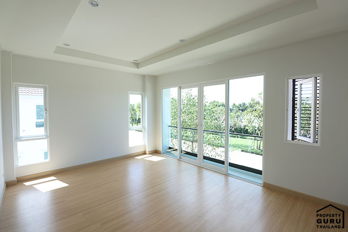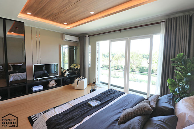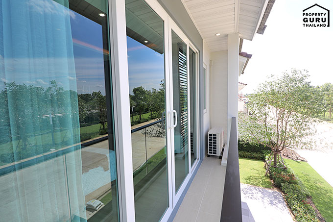 Master Bedroom มีระเบียง ประตูบานเลื่อนสามารถเปิดรับลมและรับแสงได้เต็มๆ