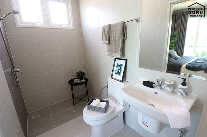 ภายในห้องน้ำชั้นล่าง มีสุขภัณฑ์ COTTO เหมือนบ้านตัวอย่าง