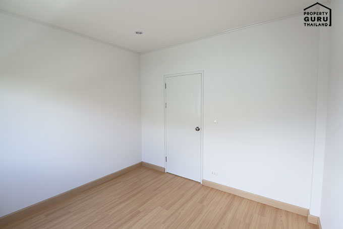 พื้นลามิเนต + ผนังฉาบเรียบทาสีขาว
