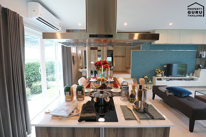 กลับมาที่ห้องครัวกันอีกครั้ง บ้านตัวอย่าง Built-in top ด้านหน้ามาเก๋ๆ พร้อมด้วย Hob&Hood เอาไปเป็นตัวอย่างแต่งบ้านกันได้เลย