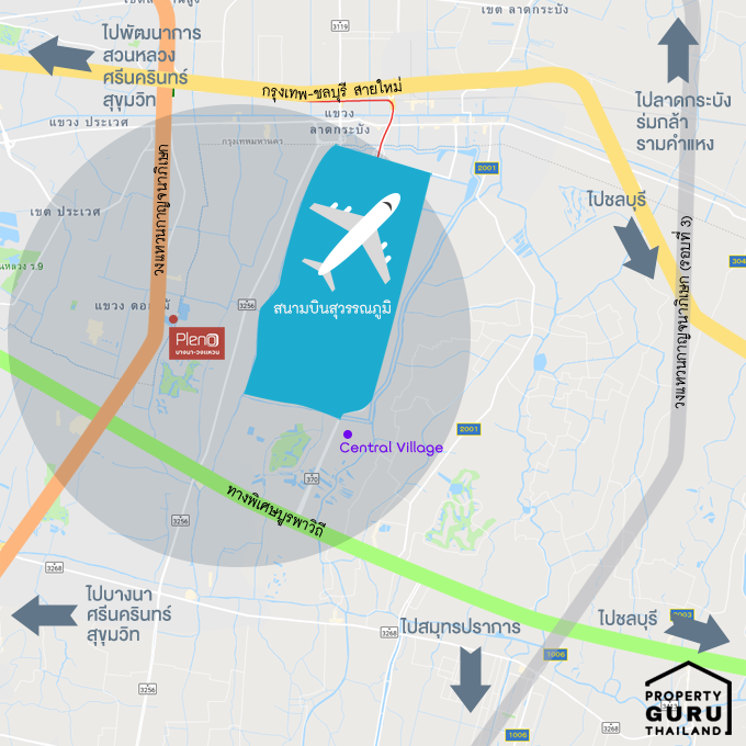 นอกเหนือจากการเดินทางที่แสนสะดวกและครอบคลุมไปทุกพื้นที่แล้ว ย่าน "บางนา-วงแหวน" ยังมีอะไรที่ที่อื่นไม่มีอีกด้วย อาทิ สนามบินสุวรรณภูมิ สำหรับใครที่ทำงานอยู่ในสนามบินสุวรรณภูมิ หรือในละแวกบางนา ประเวศ ลาดกระบัง บางพลี หรือผู้ที่ต้องเดินทางด้วยเครื่องบินบ่อยๆ การมองหาบ้านในย่าน "บางนา-วงแหวน" คือสิ่งที่ตอบโจทย์ สามารถเดินทางไปยังสุวรรณภูมิด้วยรถยนต์ได้ในเวลาเพียง 20 นาที หรือจะขึ้น Airport Rail Link ไปก็ได้ นอกจากนี้ย่านนี้ก็ยังมี Luxury Outlet Shopping Mall แห่งแรกของประเทศไทย ที่เพิ่งเปิดไปไม่นานนี้อย่าง Central Village อีกด้วย เดี๋ยวเราจะพาไปเดินเล่นกันค่ะ