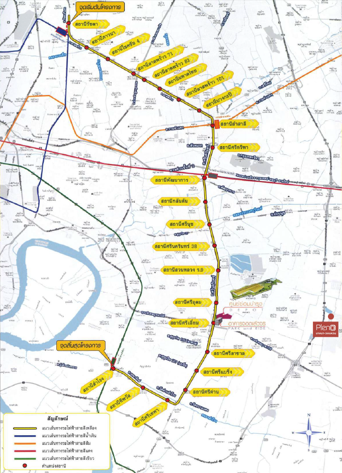 แผนที่เส้นทางรถไฟฟ้าสายสีเหลืองทั้งหมด