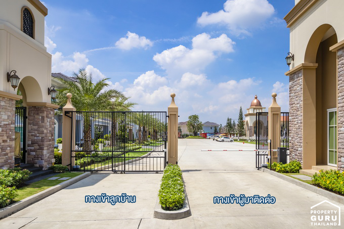 ประตูทางเข้าแยกระหว่างลูกบ้าน กับคนภายนอกที่มาติดต่อ ซึ่งทำให้คนที่อาศัยภายในโครงการมีความสะดวกยิ่งขึ้น