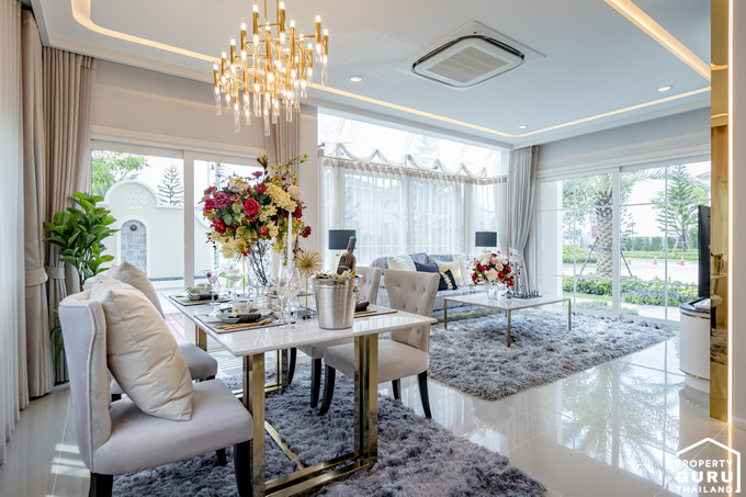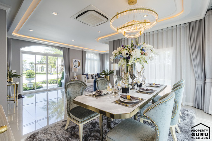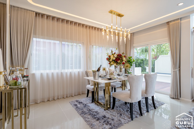 พื้นที่รับประทานอาหาร สามารถวางโต๊ะอาหารขนาด 6 ที่ได้พอดี มีหน้าต่างบานเลื่อนขนาดใหญ่ไว้รับแสงธรรมชาติ