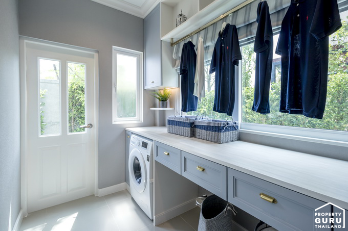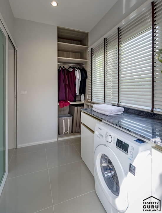 ห้องซักรีด มีหน้าต่างบานเลื่อนขนาดใหญ่ 1 บาน และบานกระทุ้ง 1 บาน ส่วนประตูด้านหลัง สามารถเปิดออกไปลานซักล้างหลังบ้านได้