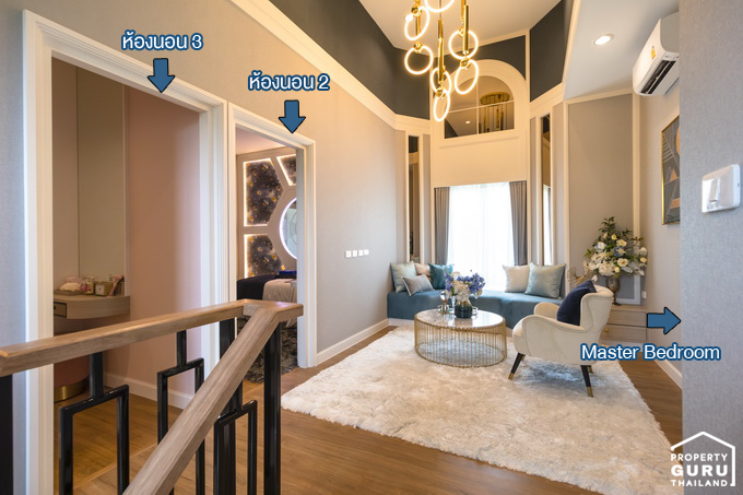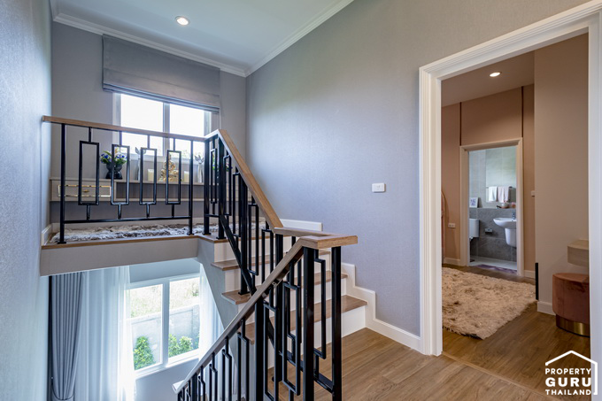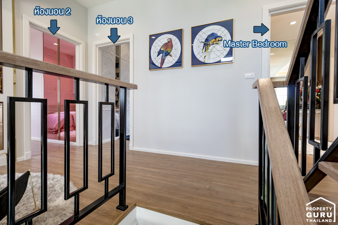 ขึ้นบันไดมาที่ชั้น 2 จะพบกับฟังก์ชันของห้องต่างๆ โถงชั้นนี้จัดเป็นพื้นที่พักผ่อนสำหรับครอบครัว