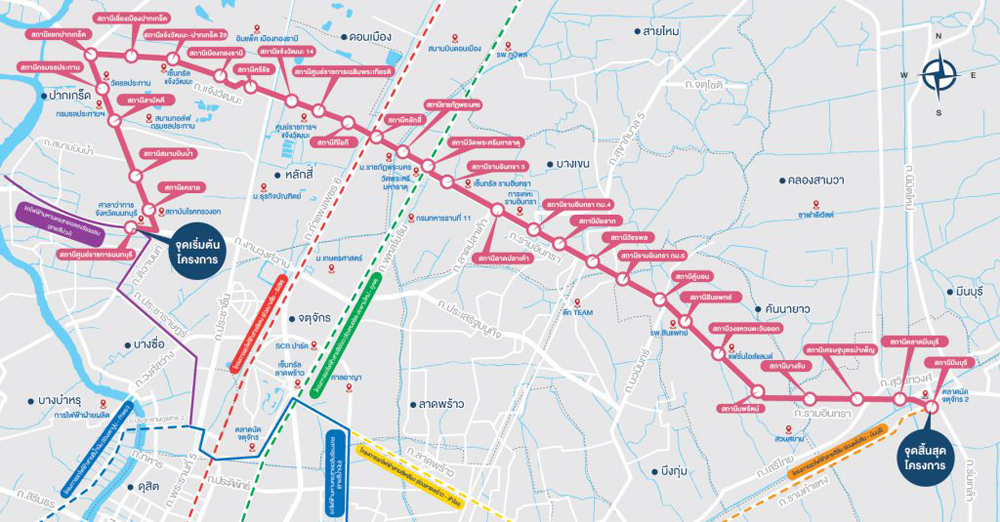 โครงการรถไฟฟ้าสายสีชมพู (ช่วงแคราย - มีนบุรี) มีระยะทางประมาณ 34.5 กม. โดยมีจุดเริ่มต้นบนถนนรัตนาธิเบศร์ บริเวณด้านหน้าศูนย์ราชการจังหวัดนนทบุรี จุดสิ้นสุดโครงการที่ทางแยกร่มเกล้า บริเวณซอยรามคำแหง 192 รวมมีสถานีรับส่งผู้โดยสาร 30 สถานี สำหรับสถานีที่ใกล้โครงการมากที่สุดคือ สถานีคู้บอน ระยะทางประมาณ 3.9 กม.