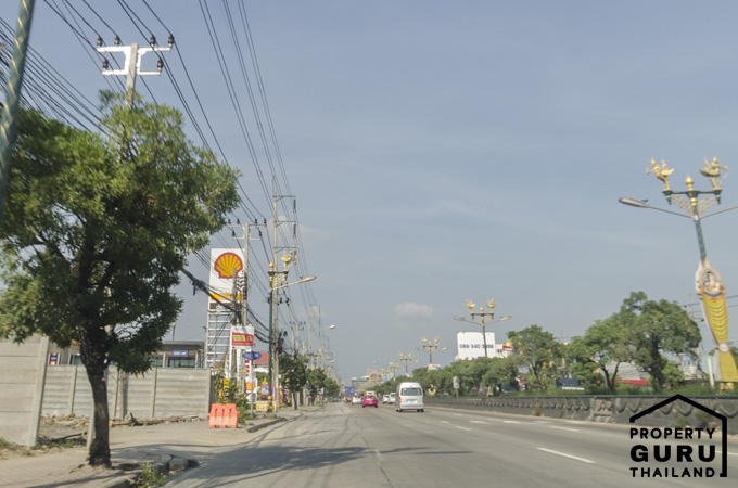 บริเวณซอยกิ่งแก้ว 29 ที่เป็นที่ตั้งของโครงการ ด้านซ้ายมือเป็นปั๊มน้ำมันเชลล์