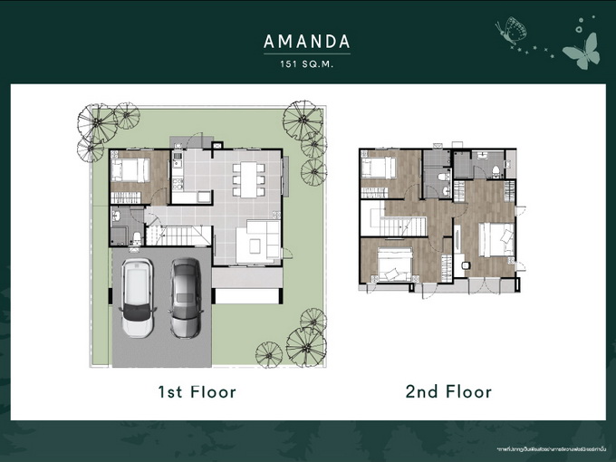 1. AMANDA (อแมนด้า) บ้านแฝด ฟังก์ชันครบ อารมณ์บ้านเดี่ยว ที่ดินเริ่มต้น 39 ตารางวา พื้นที่ใช้สอย 151 ตารางเมตร 4 ห้องนอน 3 ห้องน้ำ ที่จอดรถ 2 คัน (ข้อดีของแบบบ้านแฝดมีอะไรบ้าง ดูได้ในบทความนี้)