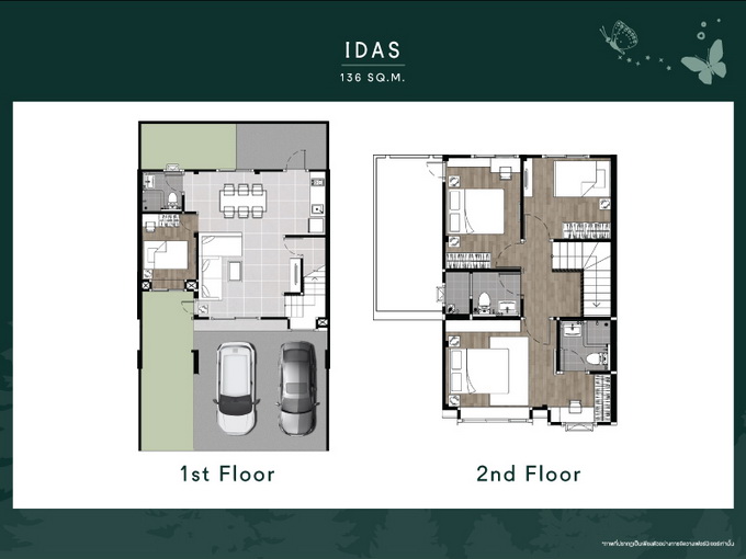 2. IDAS (ไอดาส) ทาวน์โฮม หน้ากว้าง 8 เมตร ที่ดินเริ่มต้น 28 ตารางวา พื้นที่ใช้สอย 136 ตารางเมตร 4 ห้องนอน 3 ห้องน้ำ ที่จอดรถ 2 คัน