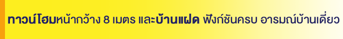 - แบบบ้าน : ทาวน์โฮม 2 ชั้น หน้ากว้าง 8 เมตร ที่ดิน 28-35 ตร.ว. พื้นที่ใช้สอย 136 ตร.ม.