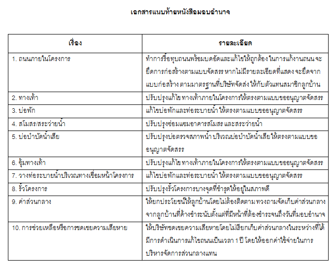 ตัวอย่างเอกสาร "บันทึกข้อตกลง" ที่ลูกบ้านทำกับเจ้าของโครงการเพื่อสรุปและยุติปัญหาของโครงการนี้