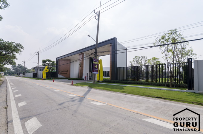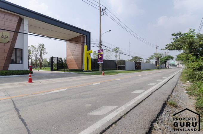 ถนนด้านหน้าโครงการจะเป็นถนน 2 เลน รถสวนกันได้สะดวก เข้า-ออกโครงการได้แบบไม่มีปัญหา