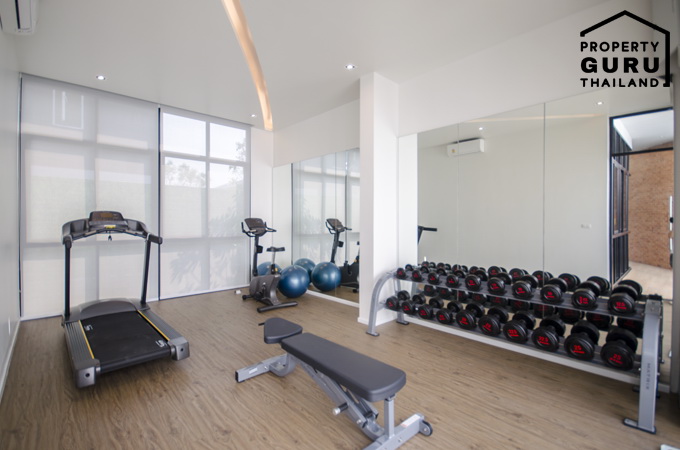 ฟิตเนสกั้นเป็นห้องกระจก อยู่ด้านในสุด
