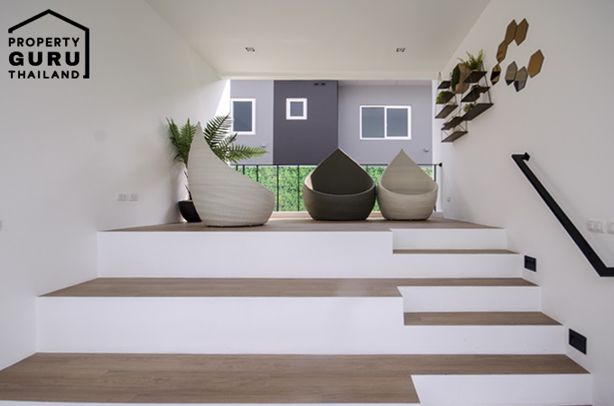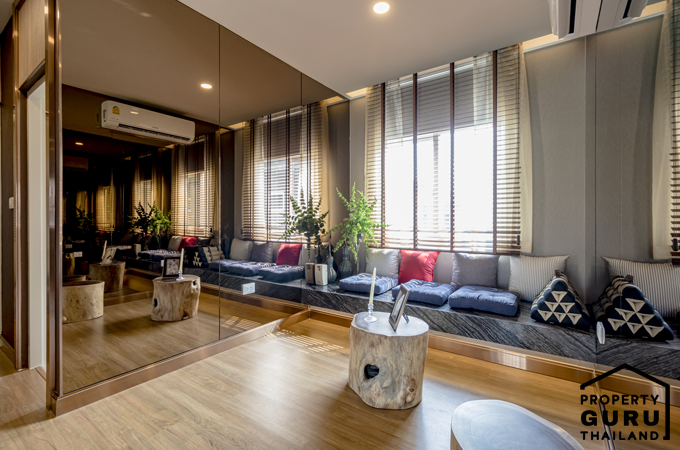 ส่วนห้องนอนชั้นล่าง โครงการแต่งเป็นเหมือนห้องนั่งเล่น เราสามารถใช้เป็นห้องอเนกประสงค์อะไรก็ได้