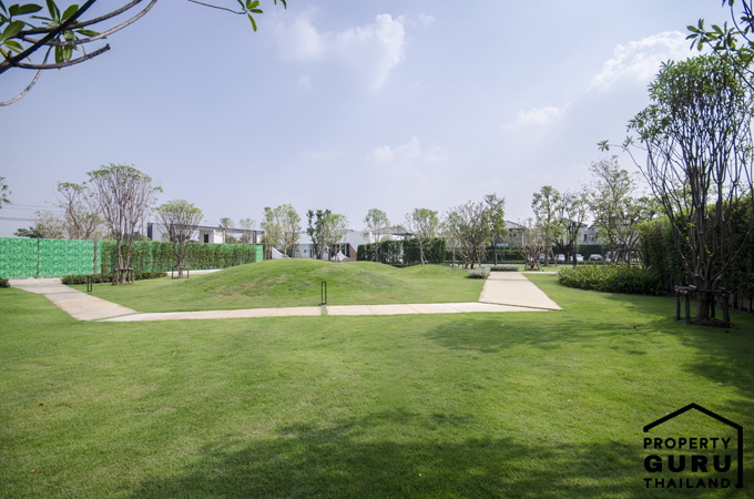 เข้ามาด้านในคลับเฮ้าส์อยู่ด้านซ้ายมือ ด้านขวาเป็นสวนสาธารณะ
