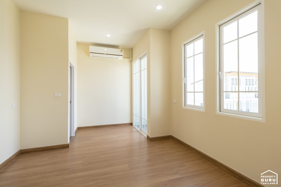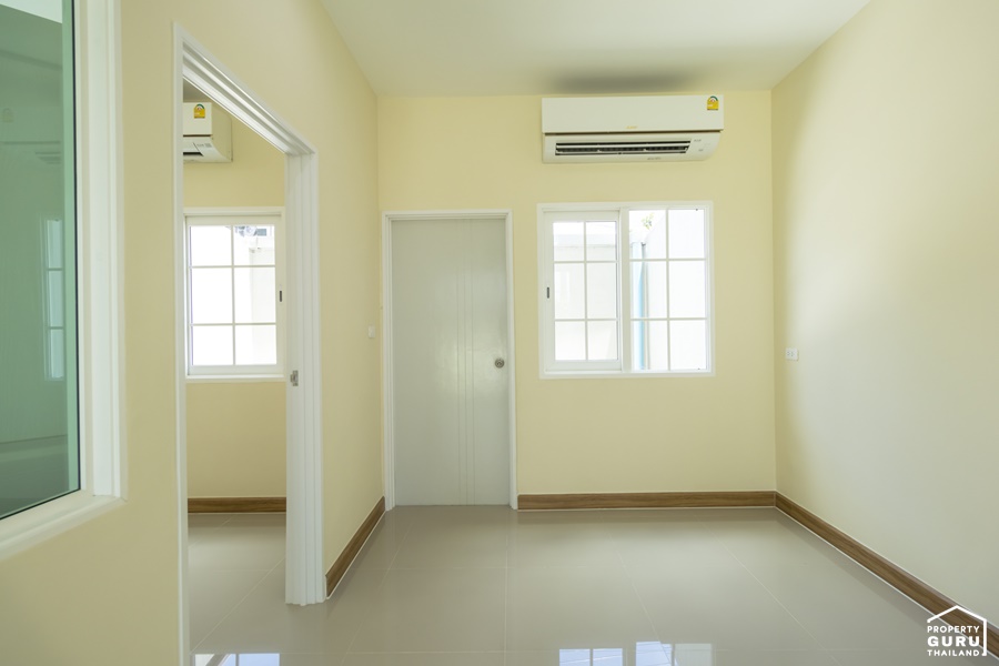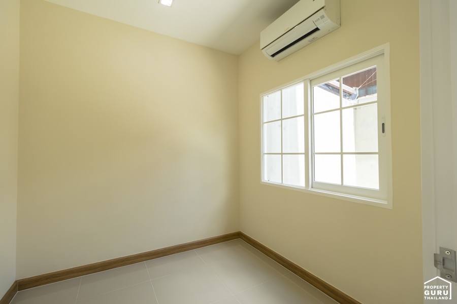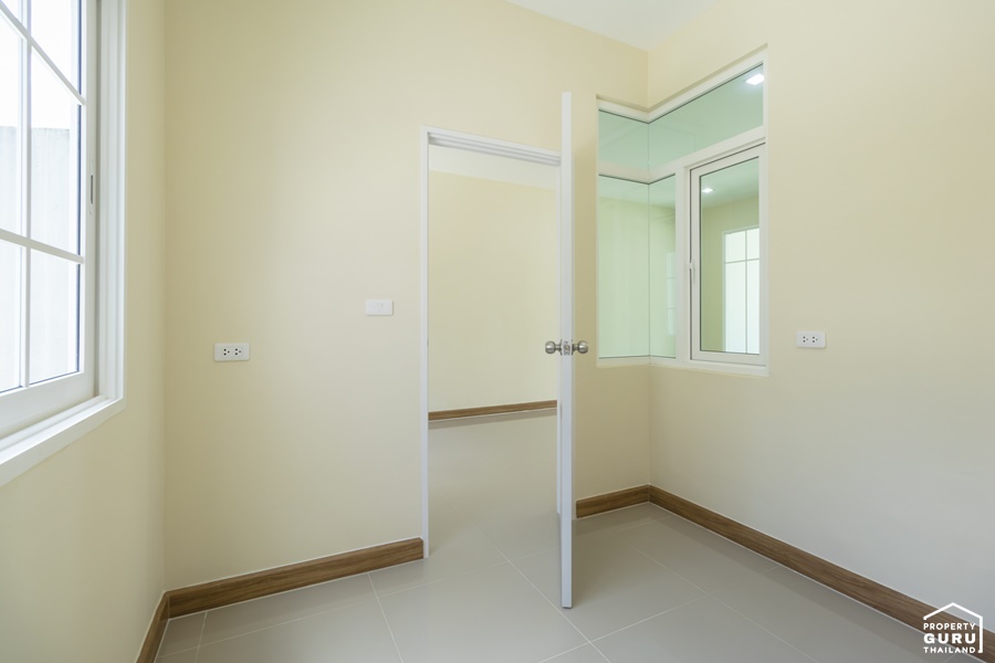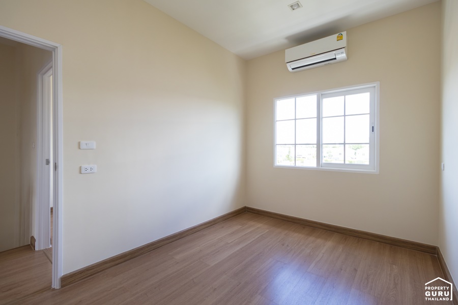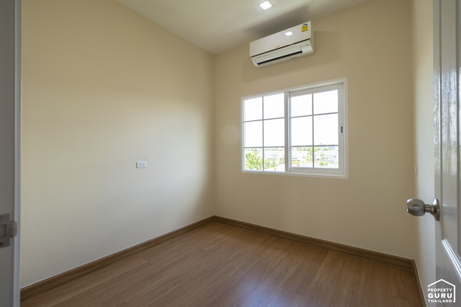 ภายในห้องนอนที่ 3 มีหน้าต่างบานเลื่อน กรอบ UPVC สีขาว