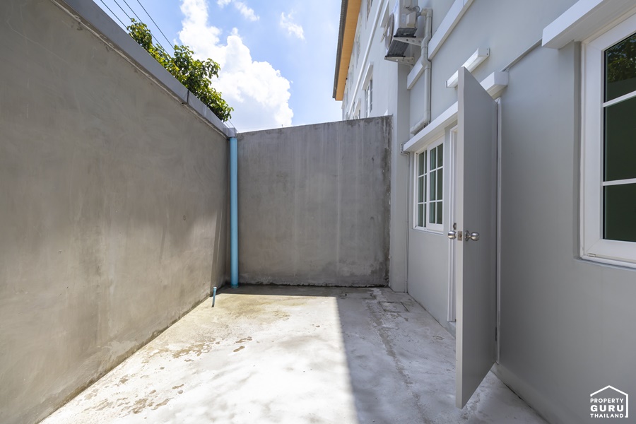 ลานซักล้างหลังบ้าน หากเป็นแปลงมุมจะมีประตูด้านข้างบ้านให้แบบนี้