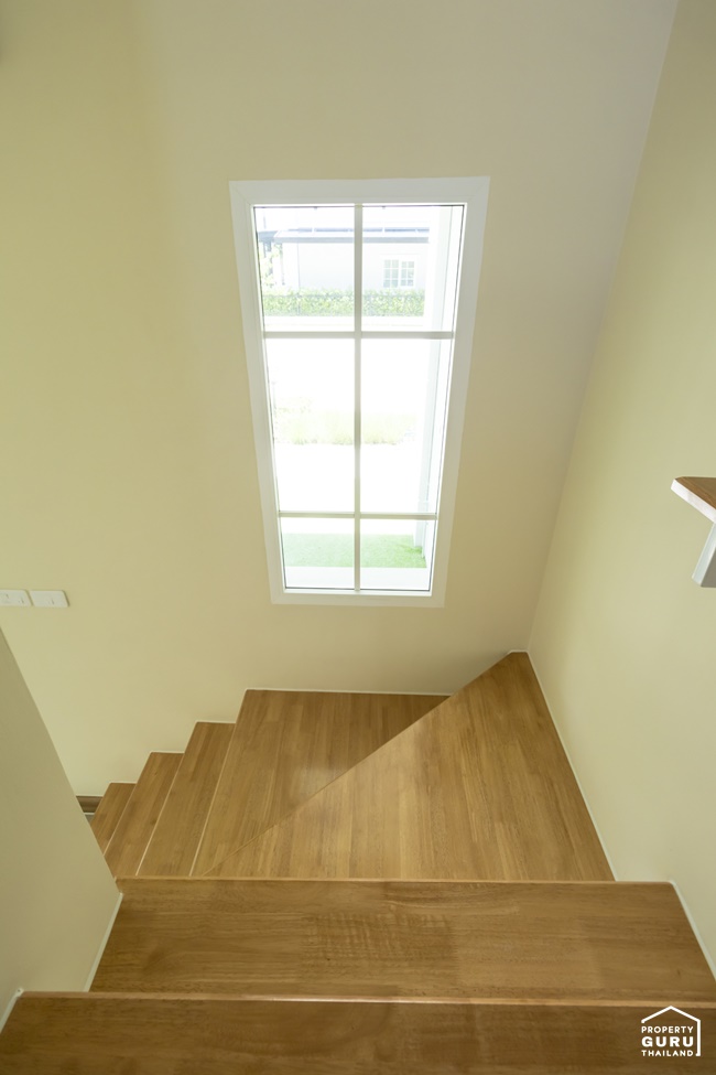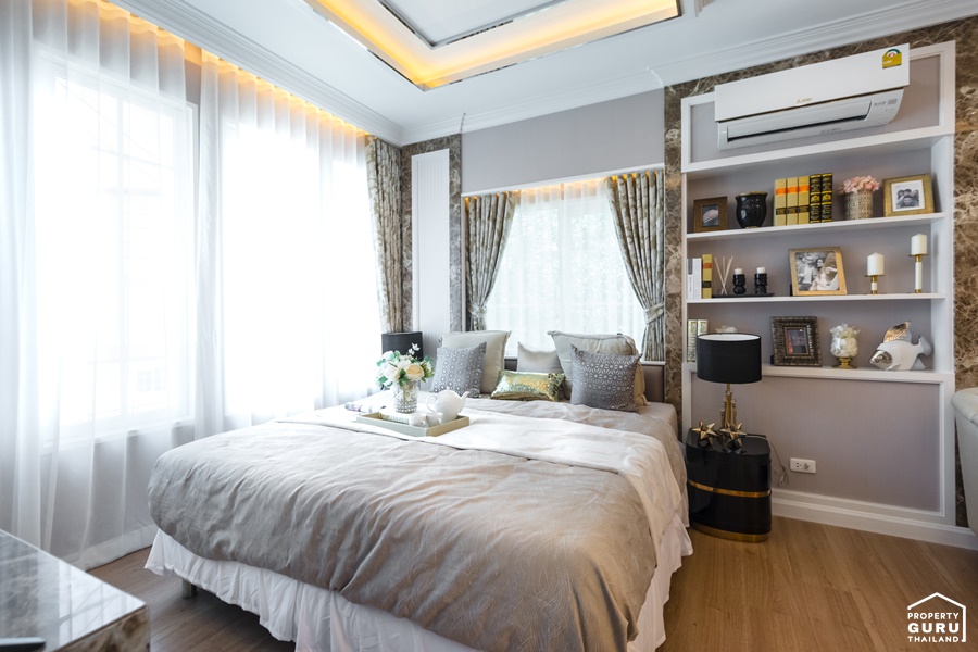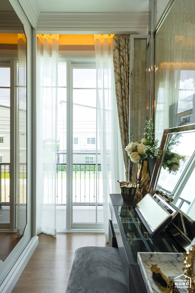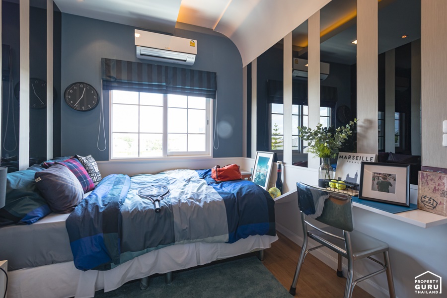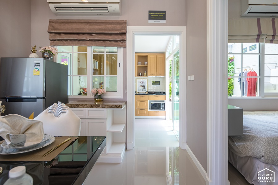 สำหรับบ้านตัวอย่างแปลงมุม จะได้หน้าต่าง 2 ฝั่ง เปิดรับแสงธรรมชาติได้อย่างเต็มที่ ทำให้ภายในห้องดูสว่าง