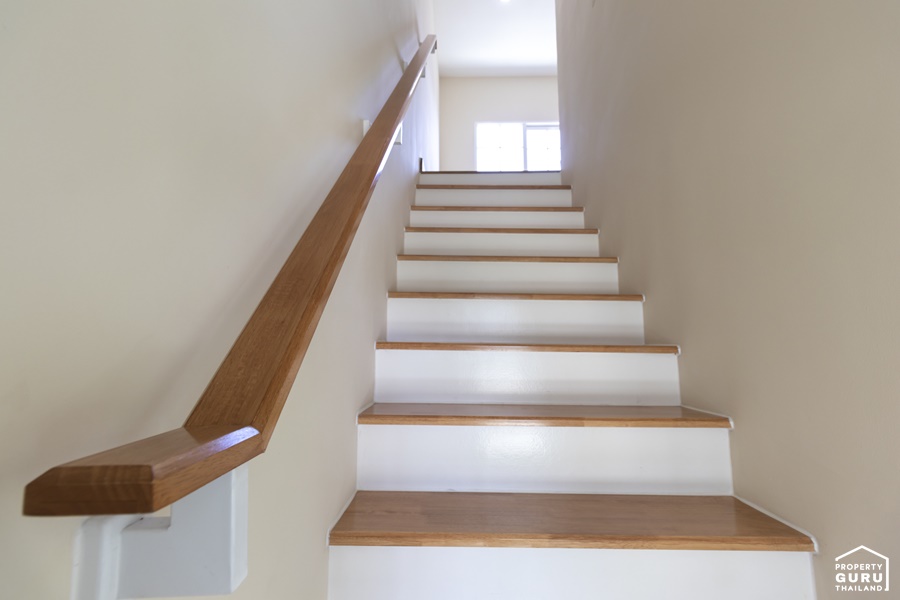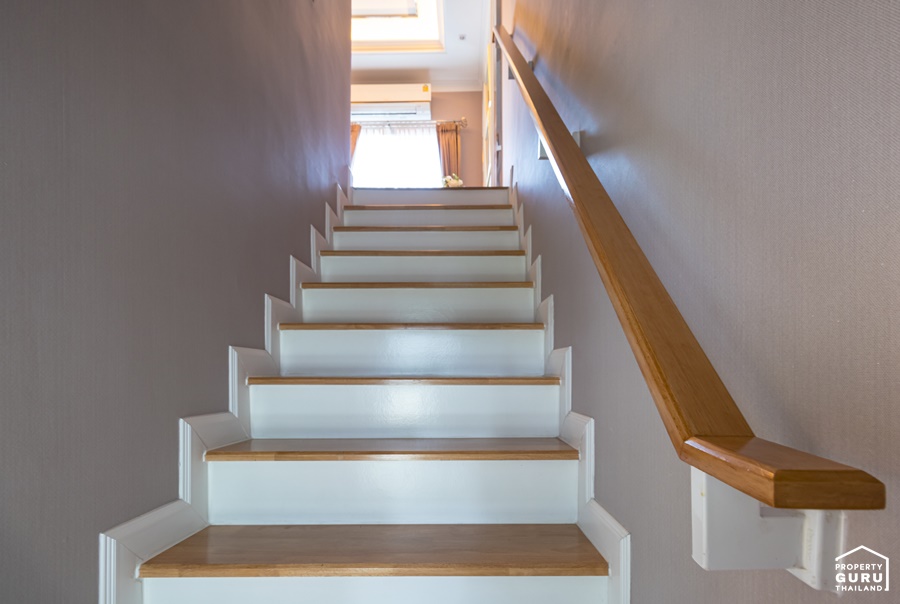 บันได้ทางขึ้นชั้น 2 เป็นคอนกรีตเสริมเหล็ก แข็งแรงทนทาน มีราวจับ 1 ข้าง