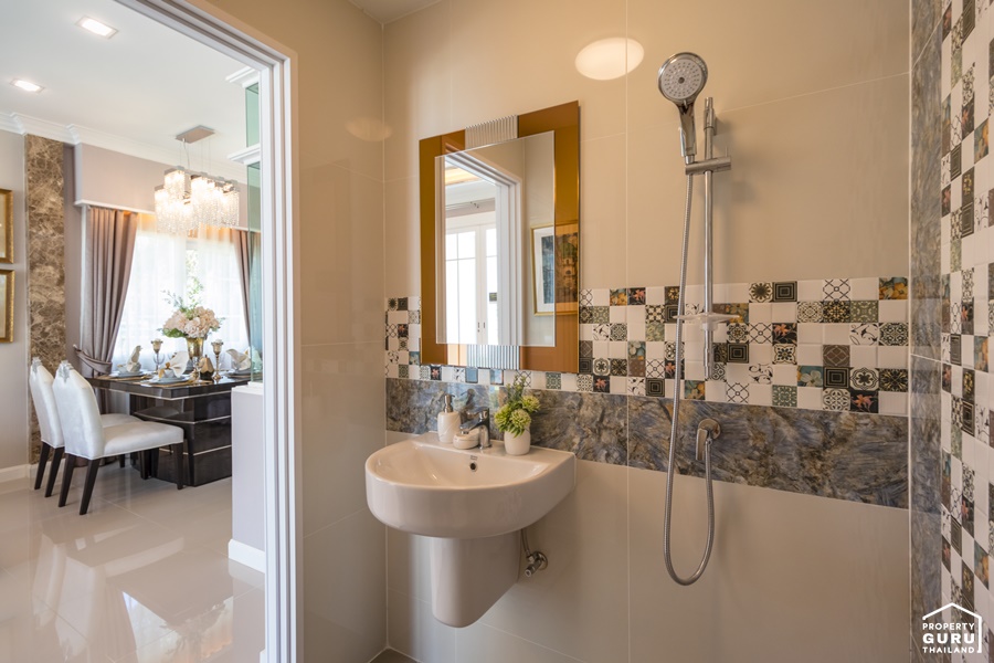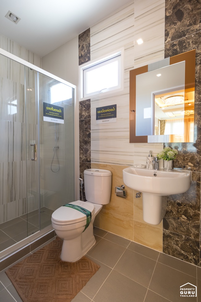 ในห้องน้ำยังคงได้ฟังก์ชันการใช้งานครบ แตกต่างกันที่ตำแหน่งการจัดวาง