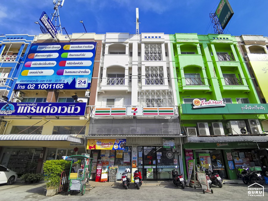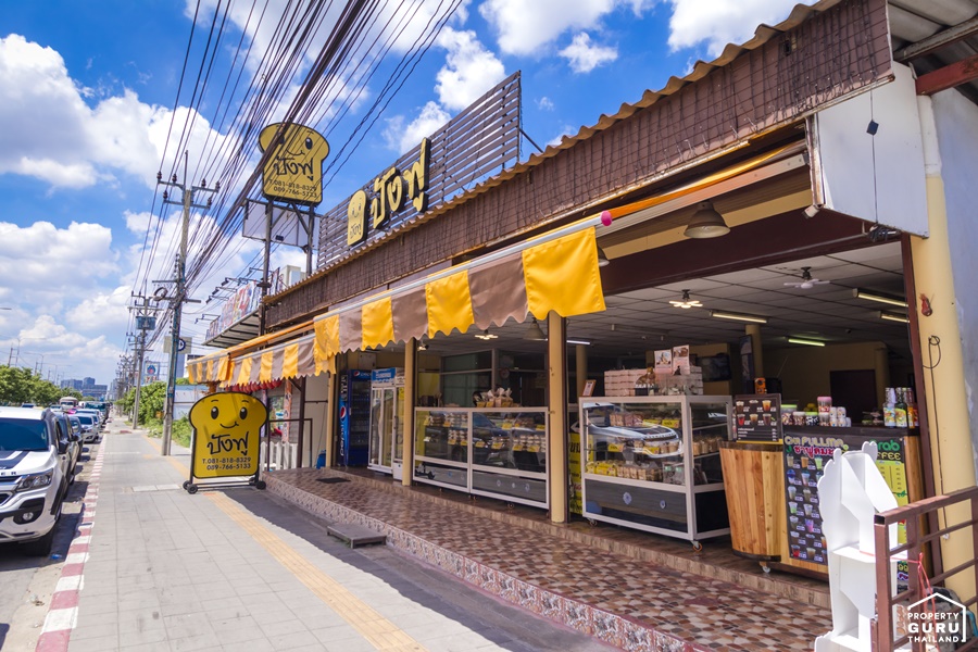 ด้านหน้าติดถนนกัลปพฤกษ์ ก่อนถึงทางเข้าโครงการจะมีแนวอาคารพาณิชย์ ซึ่งเปิดเป็นร้าน 7-Eleven
