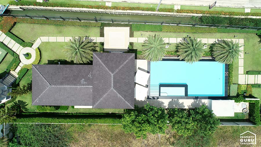 จากภาพด้านซ้ายเป็นตำแหน่งคลับเฮ้าส์ และด้านขวาเป็นตำแหน่งของสระว่ายน้ำ