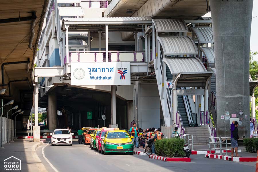 สำหรับรถไฟฟ้าสายสีลม (สนามกีฬาแห่งชาติ-บางหว้า) สถานีที่ใกล้โครงการคือ สถานีวุฒากาศ มีระยะทางประมาณ 1.5 กม. จากโครงการ ให้เลือกลงประตูทางออกที่ 2 จะเป็นทางที่ใกล้ที่สุด หรือหากเดินทางเข้าเมืองเรียกว่าจากสถานีวุฒากาศนั่งไปเพียง 6 สถานีก็สามารถเข้าถึงย่านธุรกิจใจกลางเมืองอย่างสาทรได้สะดวกสุดๆ
