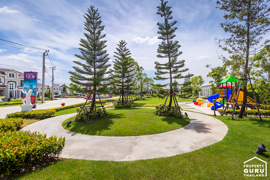 สิ่งอำนวยความสะดวกภายในโครงการถือเป็นเรื่องสำคัญ ในการเลือกซื้อบ้านดีๆ สักหลัง เพราะแม้เราจะอยู่ภายในบ้าน แต่สภาพแวดล้อมภายในโครงการก็สำคัญไม่แพ้กัน ซึ่งโกลเด้น นีโอ บางนา-สวนหลวง ให้ความสำคัญเรื่องส่วนกลาง ไม่ว่าจะเป็นสวนขนาดใหญ่ มีสนามเด็กเล่น ตกแต่งด้วยน้ำพุ ศาลาพักผ่อน พร้อมคลับเฮ้าส์ที่ดูหรูหรด้วยสถาปัตยกรรมแบบอังกฤษ ที่มีสระว่ายน้ำ ฟิตเนส และห้อง Lobby ทั้งถนนทางเข้าขนาดใหญ่ และการวางผังของโครงการบ้านเพื่อไม่ให้รู้สึกแออัด รวมไปถึงระบบรักษาความปลอดภัย สิ่งที่กล่าวมาทั้งหมดนี้ถือเป็นปัจจัยในการเลือกซื้อบ้าน และโครงการนี้มีให้ครบตามต้องการค่ะ