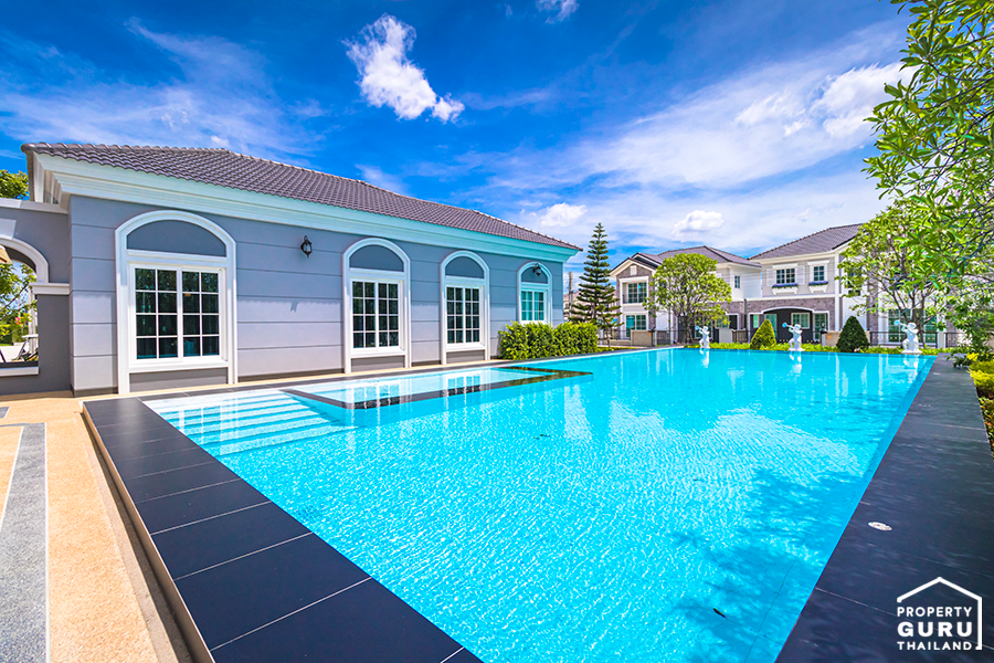 คลับเฮ้าส์ขนาดใหญ่สไตล์อังกฤษ หรูหรา ที่ภายในมีทั้ง ฟิตเนส และสระว่ายน้ำ