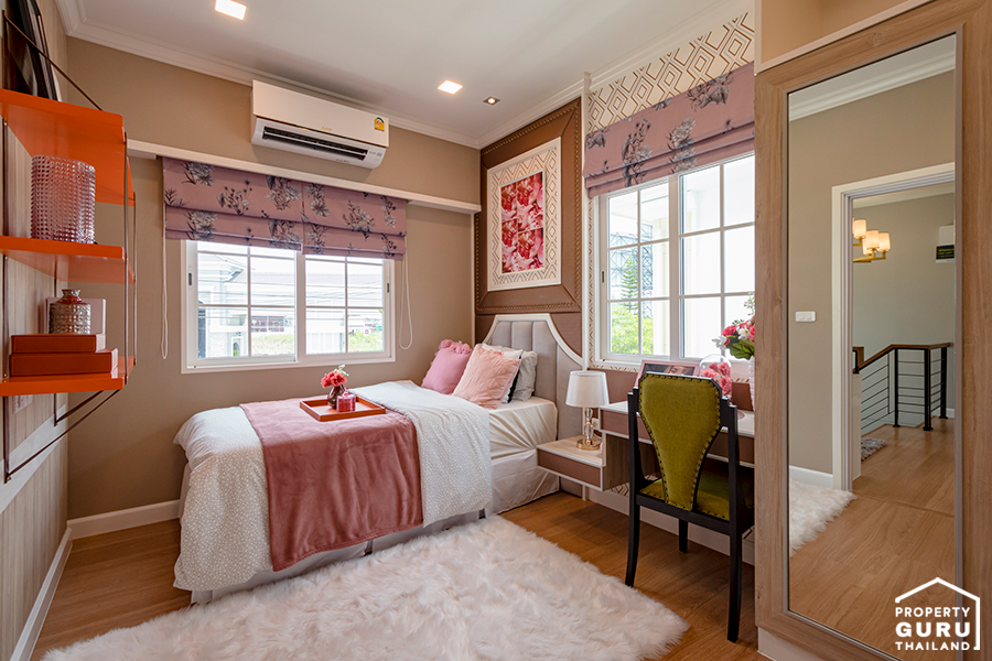 มีทางเข้าห้องน้ำจากภายในห้องนอน วางเตียงนอน ตู้เสื้อผ้า และโต๊ะเครื่องแป้งได้พอดี