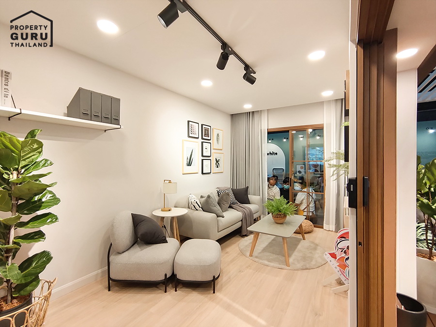 ด้านในจะเป็นพื้นที่ห้องนั่งเล่นดูทีวี และวางโต๊ะทำงานได้