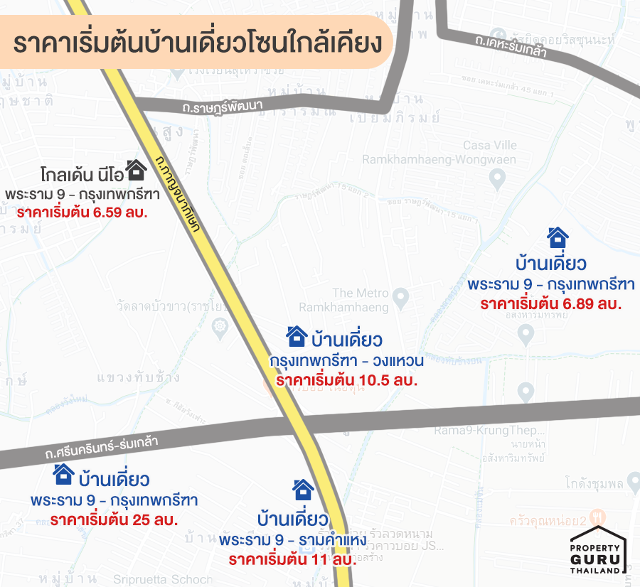 หลายคนมองว่า แค่ได้อยู่ในเมืองก็ทำอะไรได้สะดวกแล้ว อาจจะไม่ใช่คำตอบเสมอไปค่ะ บางทีการได้อยู่ขยับออกมาหน่อย ไม่ไกลจากตัวเมืองมาก แต่มีแหล่งอำนวยความสะดวกเยอะไม่แพ้กัน อีกทั้งยังสามารถไปใช้บริการได้จริง ไม่ว่าจะเป็นตัวเราเอง, พ่อแม่ หรือแม้แต่ลูกเราจะเข้าโรงเรียน ก็ต้องเป็นทำเลที่มีโรงเรียนชั้นนำ เป็นต้น เราไปดูกันค่ะว่าสถานที่ใกล้เคียงทำเล พระราม 9 - กรุงเทพกรีฑา นี้มีอะไรบ้าง