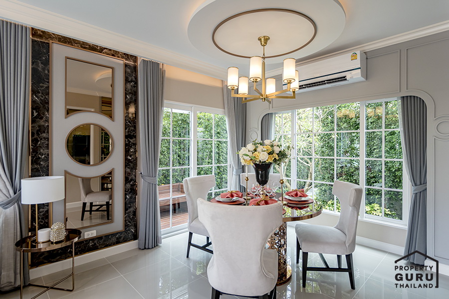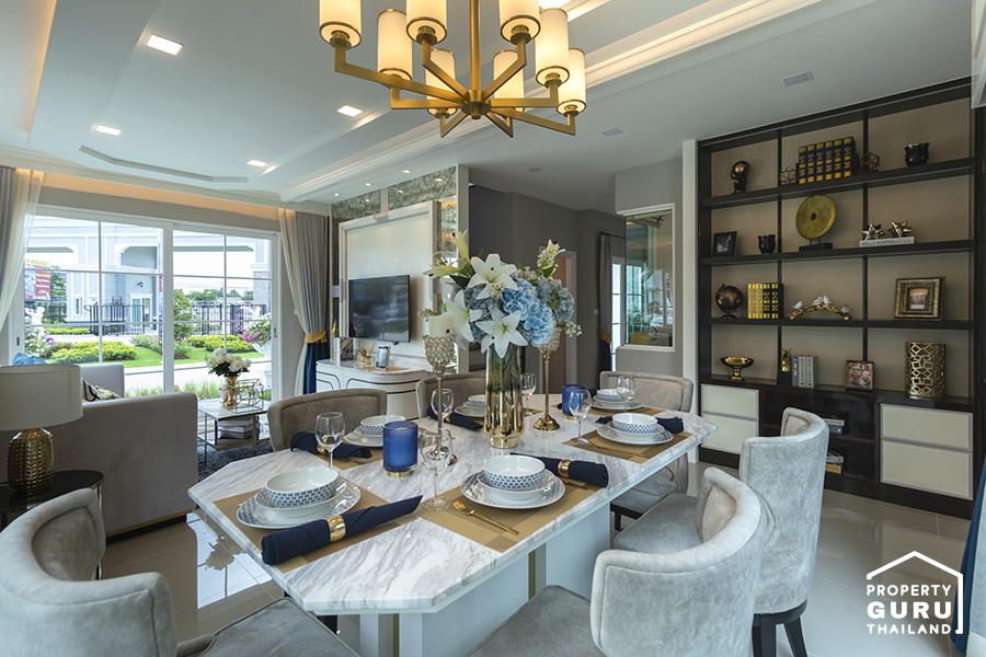 สำหรับแบบบ้าน London จะมีพื้นที่กว้างขึ้นมาอีก พื้นที่รับประทานอาหารสามารถวางโต๊ะสำหรับ 6 ที่นั่งได้เลย