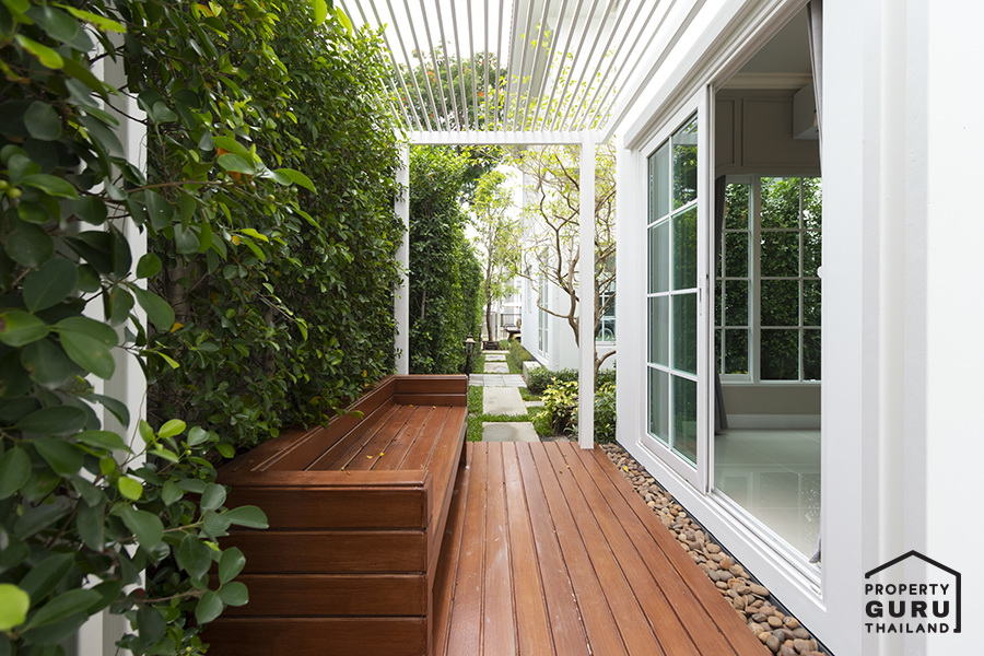 พื้นที่นั่งเล่นข้างบ้าน หรือจะทำเป็นสวนหย่อมเล็กๆ ก็ได้