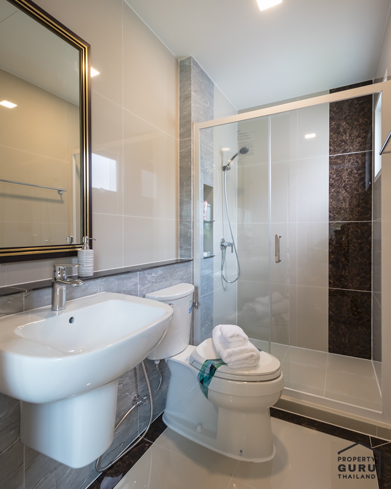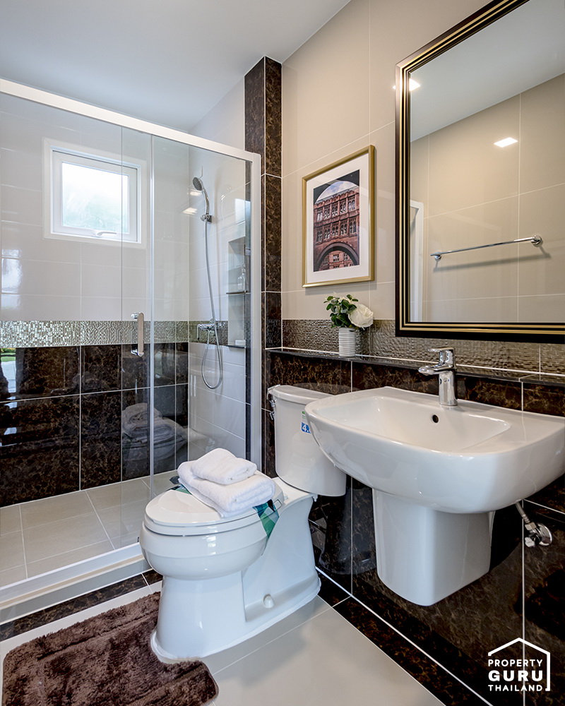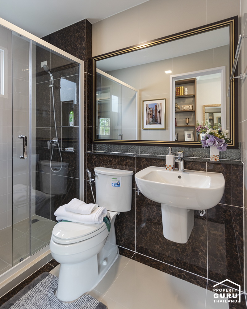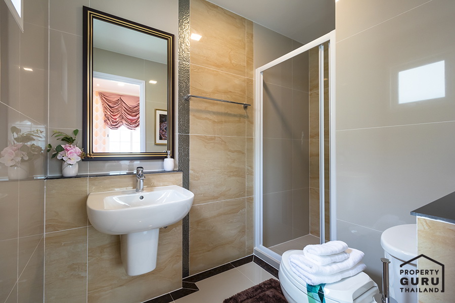 มีห้องน้ำกลาง อยู่บริเวณโถงบันได แบ่งส่วนแห้งส่วนเปียกให้เช่นกัน