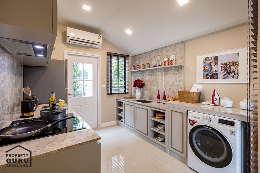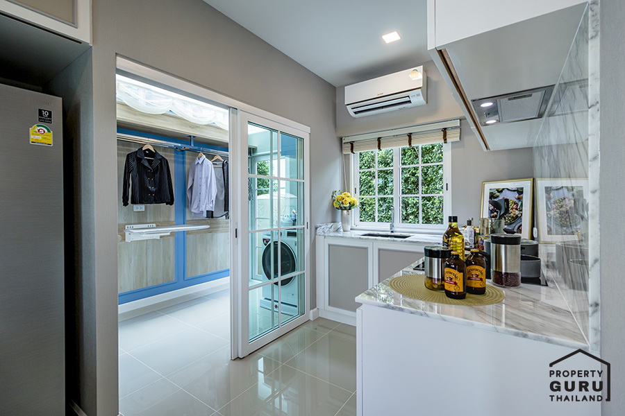 ถัดมาเป็นห้องครัว และติดกันเป็นจุดเด่นของแบบบ้าน London เลยค่ะ นั่นก็คือห้อง Glass House Laundry นั่นเอง