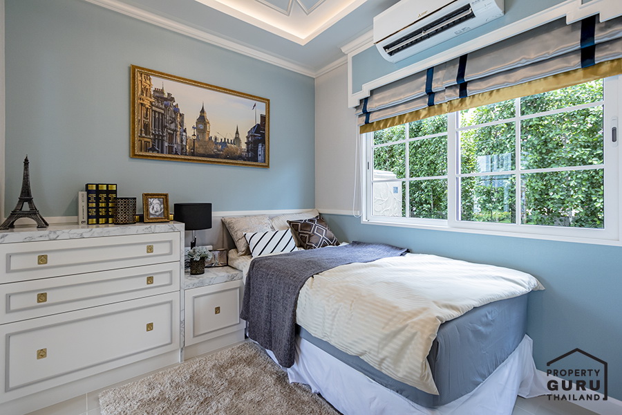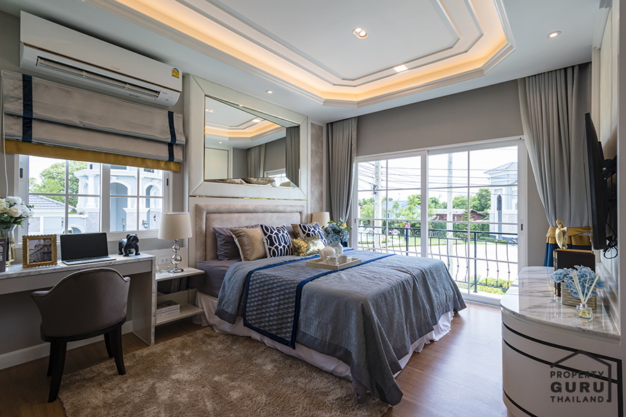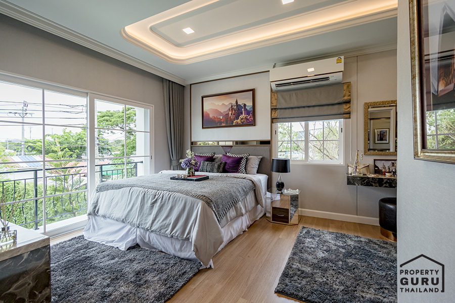 Master Bedroom อยู่บนชั้น 2 ของบ้าน จะตั้งอยู่ด้านหน้าบ้าน มีระเบียงเล็กๆ อยู่ด้านข้าง
