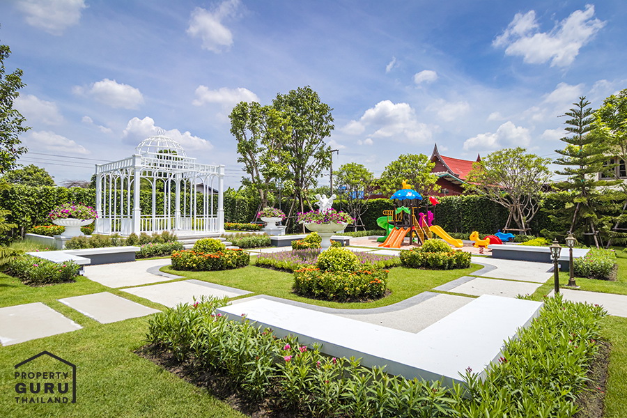 การได้อยู่ในโครงการที่มีสิ่งอำนวยความสะดวกส่วนกลางที่ทำให้คุณภาพชีวิตดีขึ้น ก็ถือเป็นอีกหนึ่งความมั่นคงของชีวิตที่เราไม่ต้องออกไปหาที่ไหนอีกแล้ว เพราะทางโกลเด้นแลนด์ เขาได้ใส่ใจในสุขภาพสิ่งแวดล้อมของลูกบ้าน ด้วยการจัดสิ่งอำนวยความสะดวกมาให้แบบจัดเต็ม ทั้งคลับเฮ้าส์ สไตล์อังกฤษ ที่หรูหราและสวยงาม เหมาะกับการมานั่งผ่อนคลาย ด้านในก็จะมีสระว่ายน้ำ ฟิตเนสมาให้ครบ ส่วนด้านนอกรายล้อมไปด้วยสวนสาธารณะขนาดใหญ่ ตกแต่งด้วยสถาปัตยกรรมอันสวยงาม มาพร้อมทั้งสนามเด็กเล่น เราไปดูภาพสวยๆ กันเลยค่ะ
