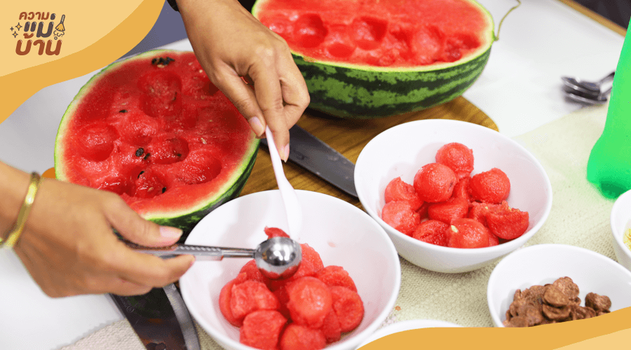 3. ที่คว้านแตงโมเป็นลูกกลมๆ หรือใช้ช้อนก็ได้ ตามความชอบส่วนบุคคล