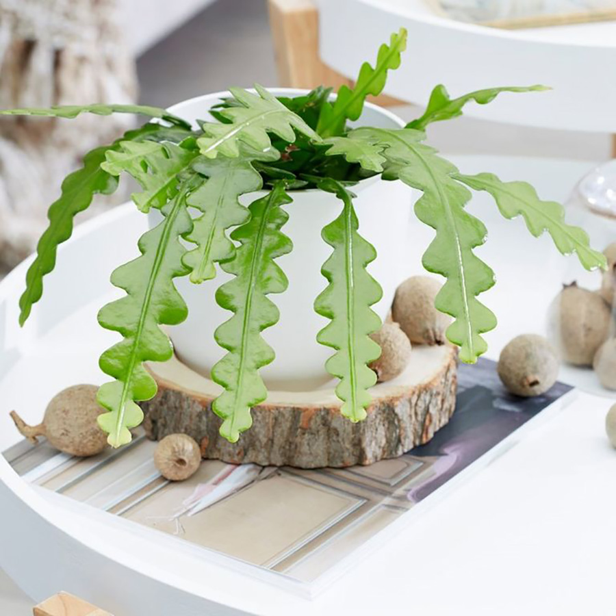 ต้นนี้มีชื่อเรียกภาษาอังกฤษว่า Fishbone cactus หรือ Zig zag cactus ตรงตัวเลยค่ะ ถึงแม้ว่าจะเป็นพืชในตระกูลแคคตัสตามชื่อ แต่การเลี้ยงดูให้เลี้ยงเหมือนกับกล้วยไม้ค่ะ ควรเลี้ยงที่แดดรำไรประมาณ 50% และรดน้ำให้พอชุ่มเท่านั้นค่ะ พืชชนิดนี้มีต้นกำเนิดมาจากในป่าของประเทศเม็กซิโก ลำต้นมีลักษณะแบนยาวคล้ายกระดูกปลา มีความซิกแซกไปมาตามชื่อนั่นเอง
