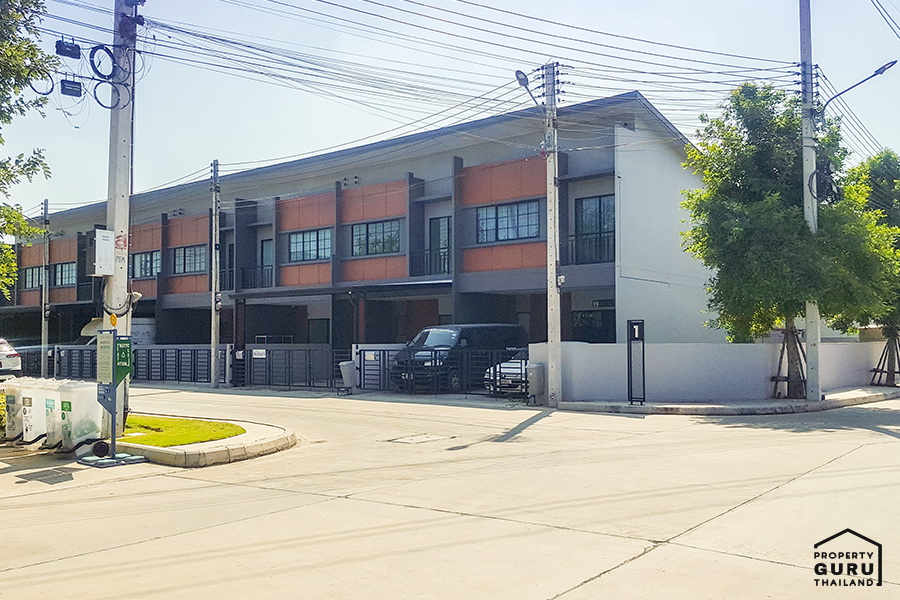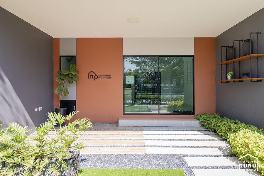มาดูในส่วนของบ้านตัวอย่าง แบบบ้านในโครงการตอนแรกนั้นมีอยู่ 3 แบบด้วยกันค่ะ แต่ตอนนี้เหลืออยู่แค่แบบเดียวเท่านั้น เราจึงเอาแบบบ้านที่เหลืออยู่มาฝากกันค่ะ เป็นแบบบ้านไซส์ 133 ตร.ม. ทาวน์โฮม 2 ชั้น โดยแบบที่เอามาให้ดูเป็นแบบแปลงมุมที่จะได้เนื้อที่เยอะกว่าหลังอื่นๆ สำหรับใครที่ชอบบ้านทาวน์โฮม แต่ก็อยากได้พื้นที่เยอะด้วยเขาก็ยังมีอยู่ แต่ต้องรีบหน่อยนะคะ เพราะมีจำนวนจำกัด และโปรโมชั่นก็จำกัดด้วยจ้า เอาล่ะ เราไปดูภาพบ้านตัวอย่างตกแต่งกันเลยค่ะ โดยจะมีภาพบ้านที่ใช้ขายจริงแทรกมาให้ดูเพื่อเปรียบเทียบด้วยค่ะ
