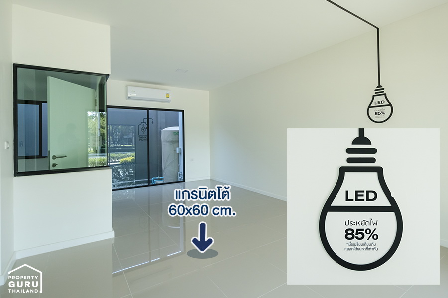เทียบกับบ้านเปล่า ก็จะดูโล่งๆ แบบนี้ แต่ว่ากว้างขวางทีเดียว นอกจากนี้หลอดไฟที่เขาให้มายังเป็นหลอด LED แบบประหยัดไฟกว่าหลอดที่ขนาดเท่ากันถึง 85% เลยทีเดียวค่ะ
