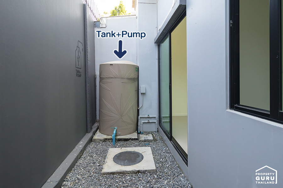 7. ถังสำรองน้ำ ขนาด 1,000 ลิตร และ ปั๊มน้ำขนาด 250 วัตต์ พร้อมติดตั้ง
