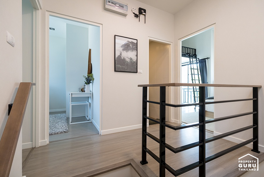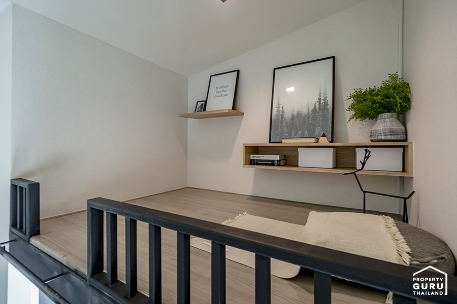 พื้นที่ชั้นบนของห้องนอน ตกแต่งไว้เป็นเหมือนพื้นที่ส่วนตัวสำหรับทำงาน หรือนั่งพักผ่อน