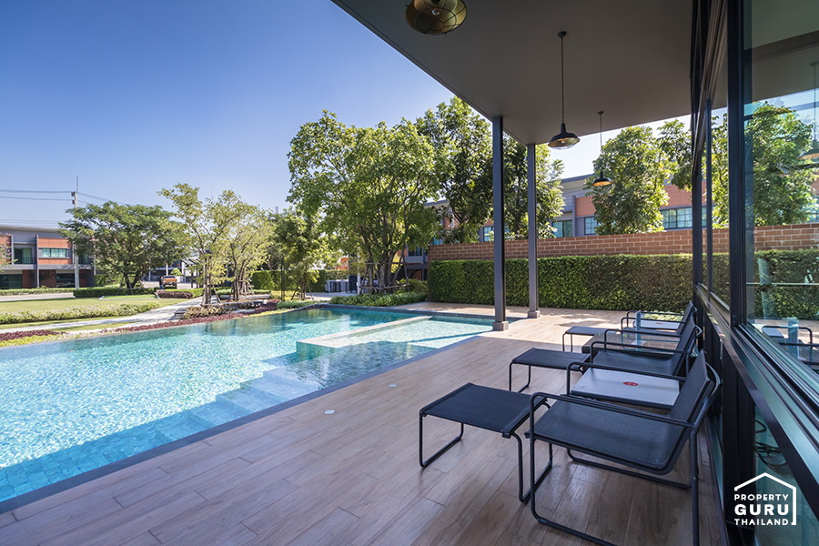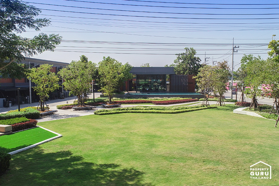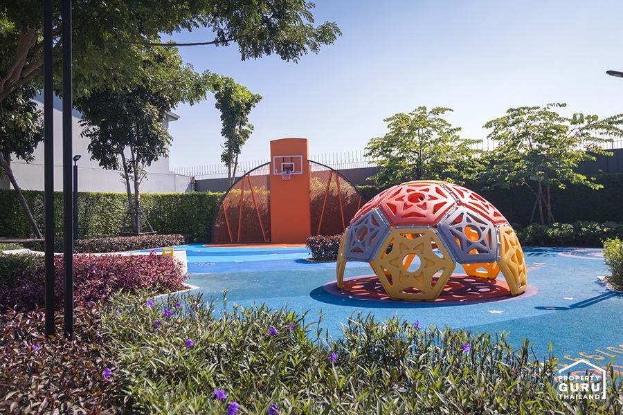 สิ่งอำนวยความสะดวกส่วนกลางเขาก็มีมาให้ครบค่ะ จัดพื้นที่ส่วนกลางไว้ตรงกลางโครงการพอดี มีทั้งสวนสาธารณะ ซุ้มนั่งเล่น ที่โดดเด่นเลยคือสนามเด็กเล่น บ้านไหนที่มีลูกเด็กเล็กแดงน่าจะถูกใจเลยค่ะ เพราะเป็นสนามเด็กเล่นที่ออกแบบร่วมกับโรงพยาบาลเด็กสมิติเวช ช่วยเสริมพัฒนาการ และมั่นใจในเรื่องความปลอดภัยได้ค่ะ แถมยังมีสนามบาสมาให้ด้วย ในส่วนของคลับเฮ้าส์ก็มีให้ครบ ทั้งสระว่ายน้ำระบบเกลือ แยกสระผู้ใหญ่-เด็ก ฟิตเนสที่มีเครื่องเล่นให้เพียงพอ ตอนไปรีวิวยังมีคนใช้งานอยู่ด้วยค่ะ มั่นใจได้เลยว่าใช้งานได้จริง เราไปดูรูปบรรยากาศกันเลยค่ะ