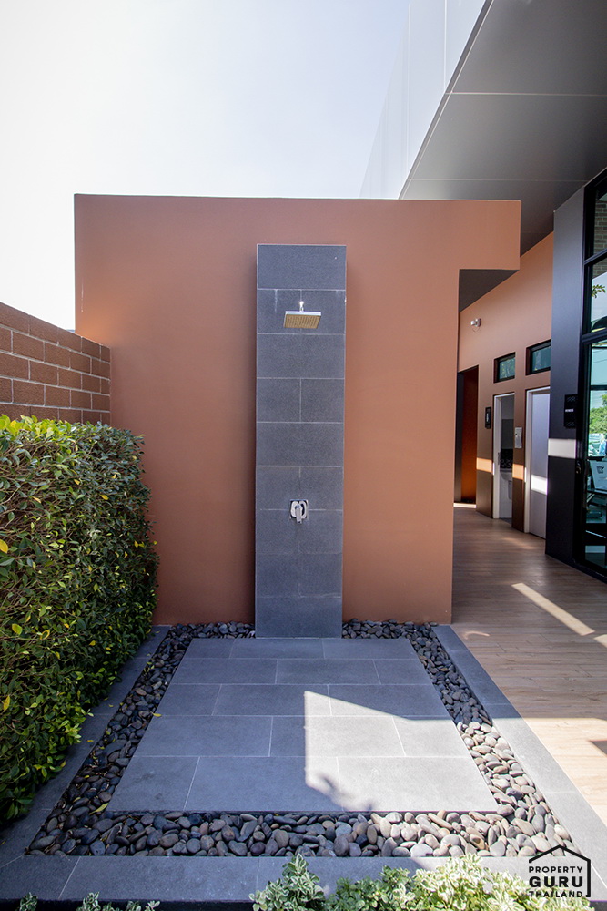 ด้านข้างมีที่อาบน้ำกลางแจ้ง สำหรับล้างตัวก่อนลงสระ