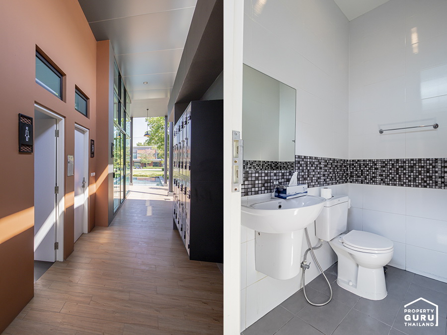 ด้านในคลับเฮ้าส์ นอกจากฟิตเนสแล้วก็จะมีห้องน้ำแยกหญิง-ชาย และตู้ล็อคเกอร์สำหรับเก็บของ
