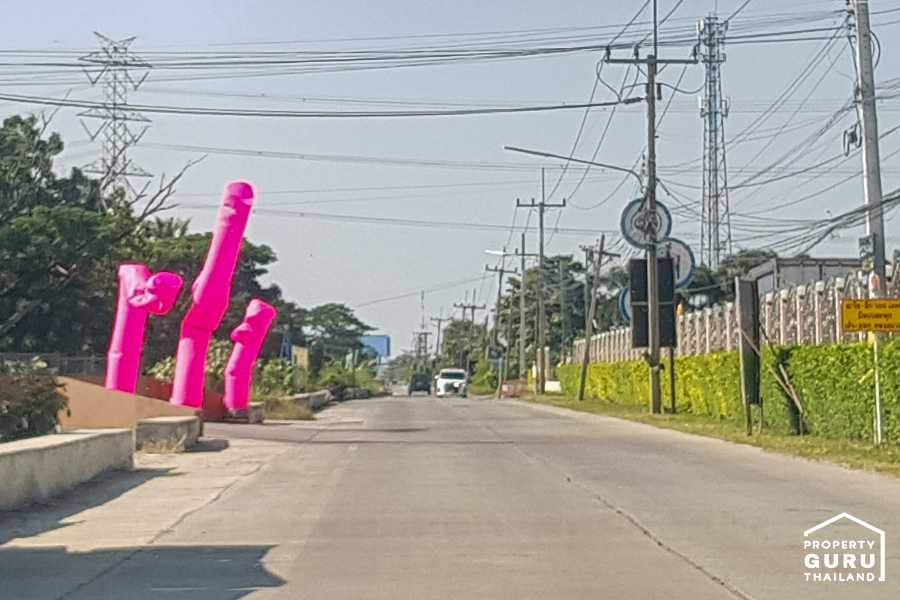 บรรยากาศถนนเลียบคลองเกาะเกรียง ที่อยู่ด้านหน้าโครงการ ฝั่งตรงข้ามเป็นโรงงานนมโฟร์โมสต์