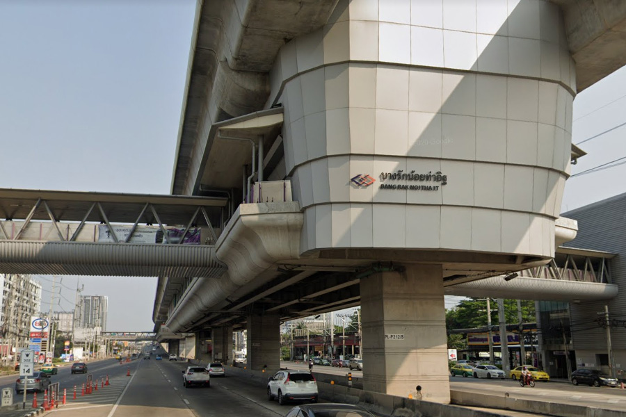 สถานีหน้าตาแบบนี้ ตั้งอยู่บนถนนรัตนาธิเบศร์